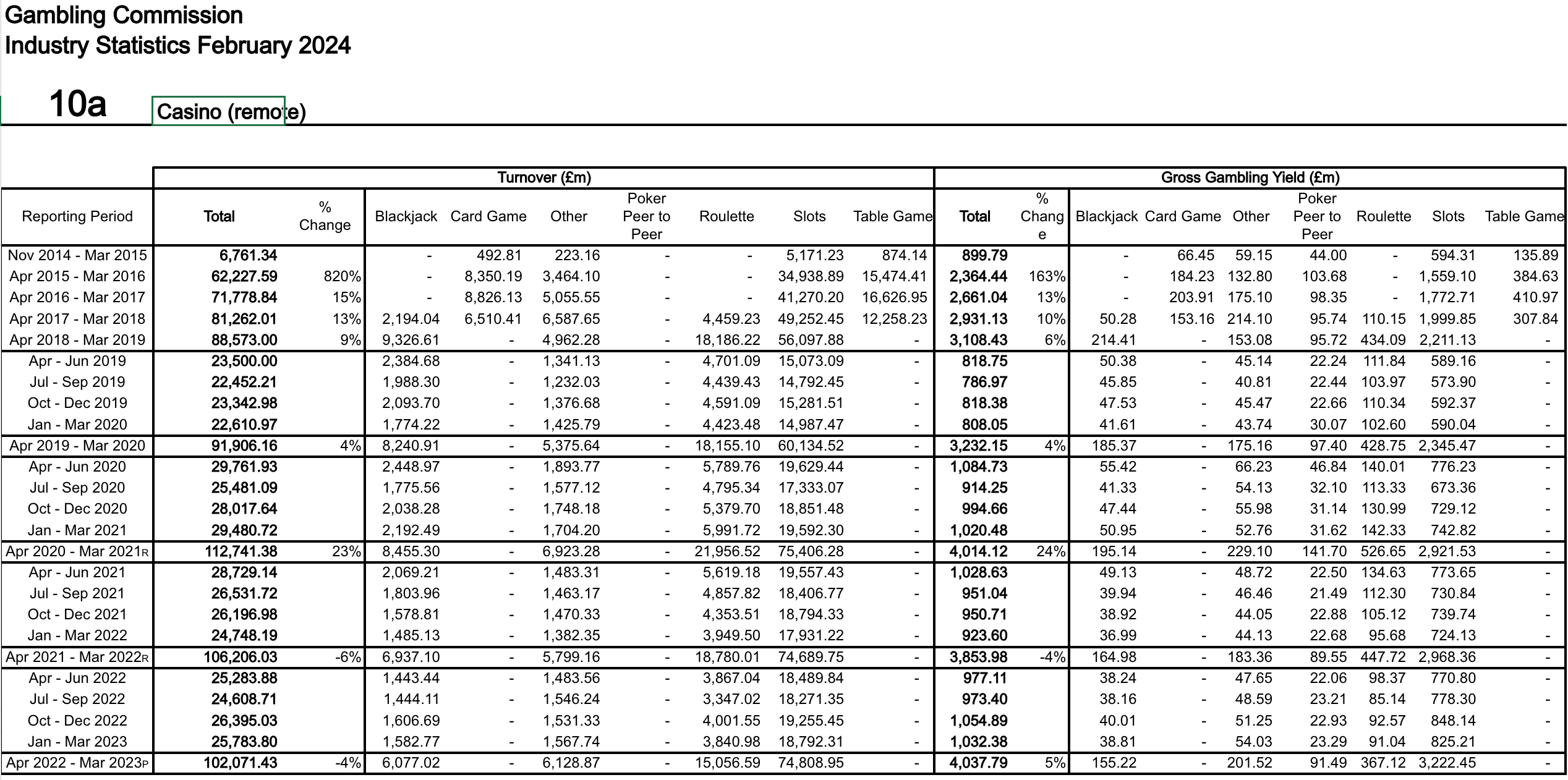 먼저 리모트 카지노 섹터 데이터이다. 예상대로 슬롯이 돈이 잘 되는 것 같다!