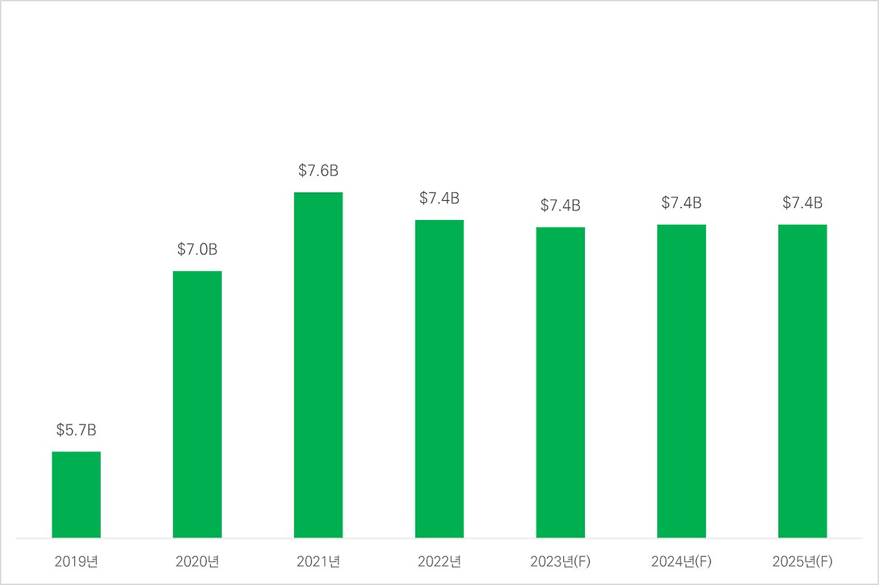 2022년 기준.. 7.4B 달러니까.. 9.8조원정도 된다.