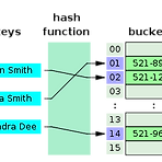 해싱(Hashing)은 하나의 문자열을 원래의 것을 상징하는 더 짧은 길이의 값이나 키로 변환하는 것이다. (출처: http://www.terms.co.kr/hashing.htm) 그리고 해싱은 해시 테이블(Hash Table)과 해시 함수(Hash Function)로 구성된다. 그림1. 해시테이블과 해시함수의 역할을 나타내는 개념도 해시테이블(Hash Table, Hash Map이라고도 불림.)은 Key와 Value를 갖는 자료구조이다. 주로 효율적인 검색에 활용되는데, 위 그림을 보자. John Smith라는 사람의 전화번호를 찾는 과정을 가정했을 때, 해시함수(Hash Function)의 입력값은 "John Smith"이고 출력값은 "01"이다. 그리고 색인이 "01"인 bucket에서 "521-8..